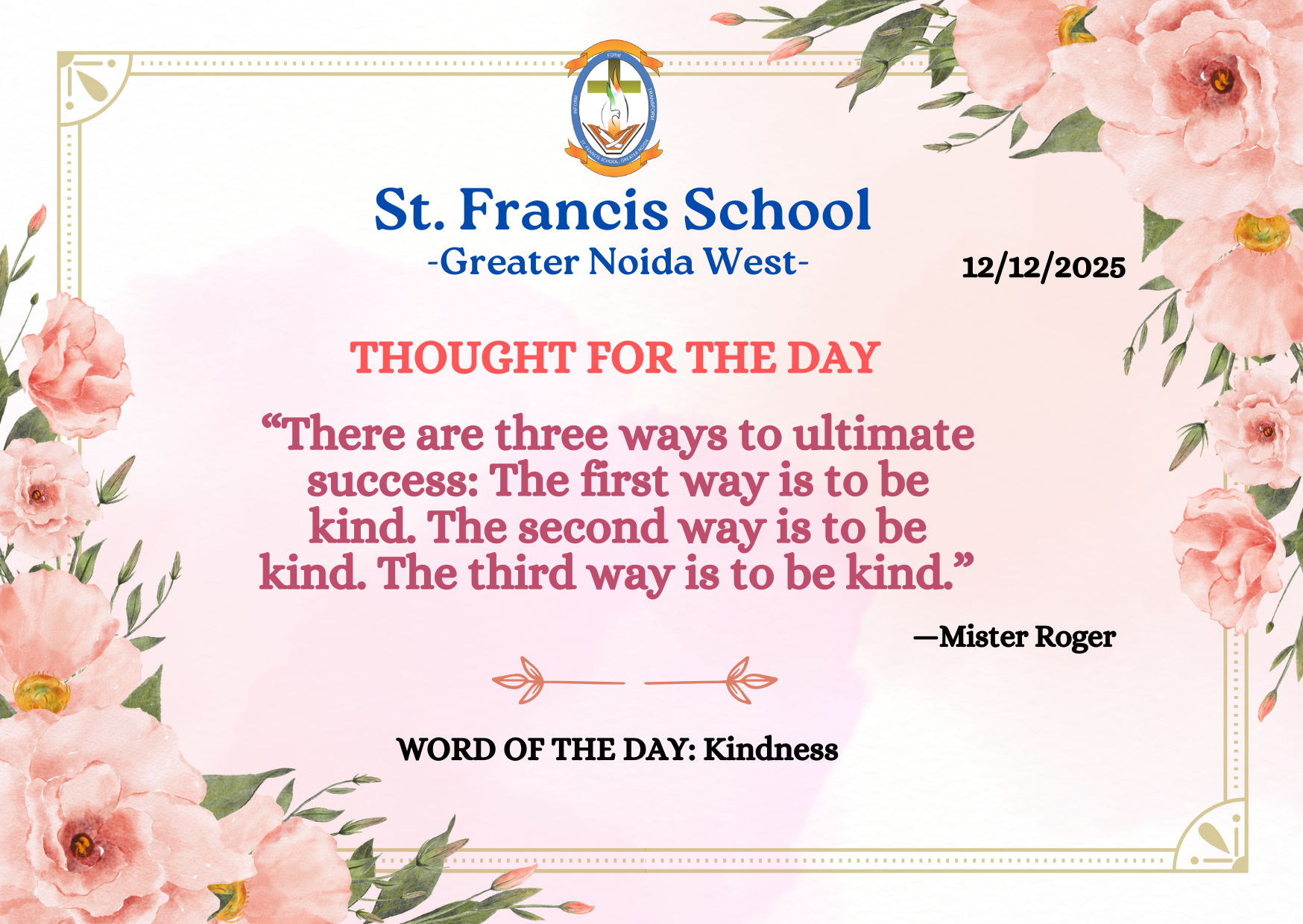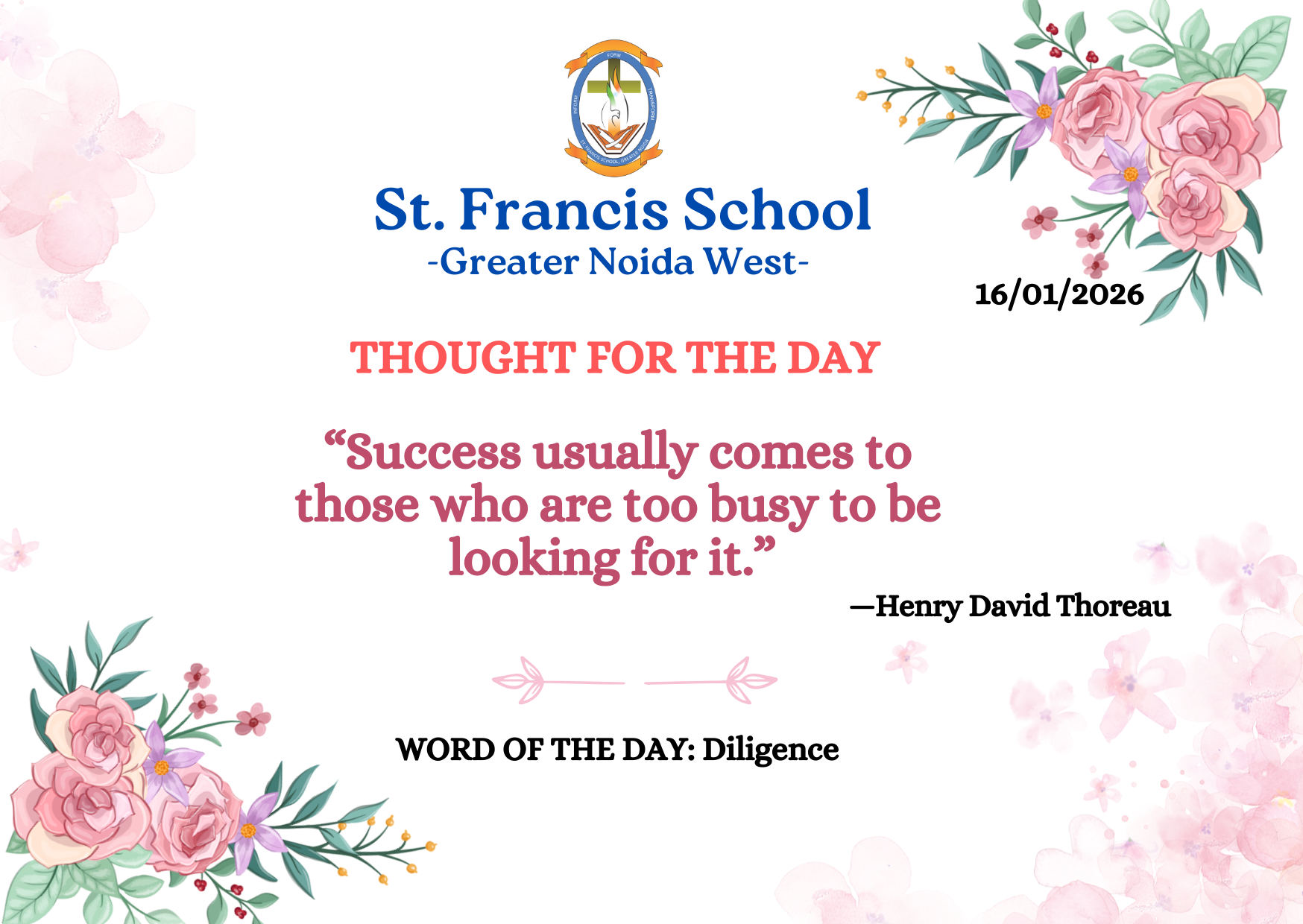 St. Francis School, Greater Noida, is an unaided Christian Minority Institution Commenced from April 2020, by the Congregation of Missionary Brothers of St. Francis of Assisi (CMSF).